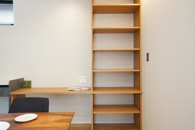 備え付けの本棚は教科書サイズを考えた大きさにすることで、いつでもお部屋がスッキリ片付きます。