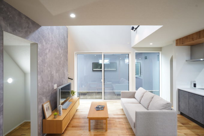 リビングの真上は吹き抜けを設けることで、より開放的な空間に。
