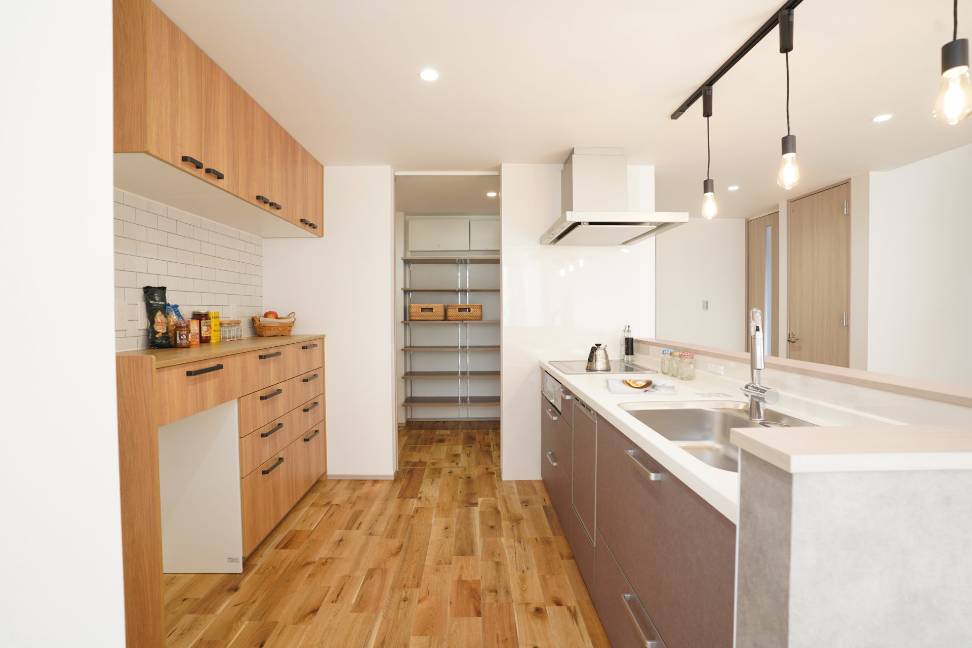 キッチン~ WIC ~サンルームへの動線がまとまっているから、家事動線が短縮され、効率UP !